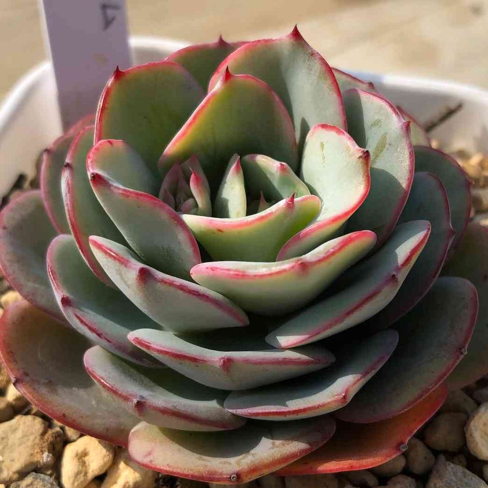幅広葉っぱにピンクの縁でみっちり感がキュート。