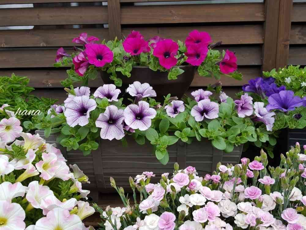 おはようございます☀️初めまして😊いいねありがとうございます💓どのサフィニアも上手に、とっても綺麗に咲かせていらっしゃいますね🌺✨こちらの🤳画像は、まさに私が切り戻しして買い替え待ちの3色です💜❤️💜😍フォローさせてください🌺よろしくお願いします🎵
