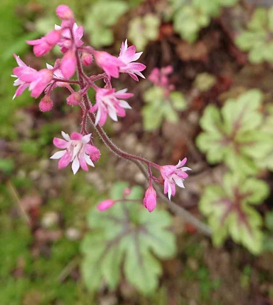 母と車で買い物行く途中に、美容院かなんかの店先にね、ヒューケラの寄せ植えがあって咲いてたの✨