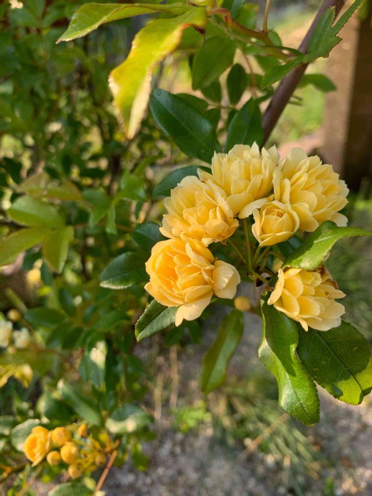 去年うどん粉まみれで値下げされてた、黄モッコウバラが少し花を咲かせてくれた✨
