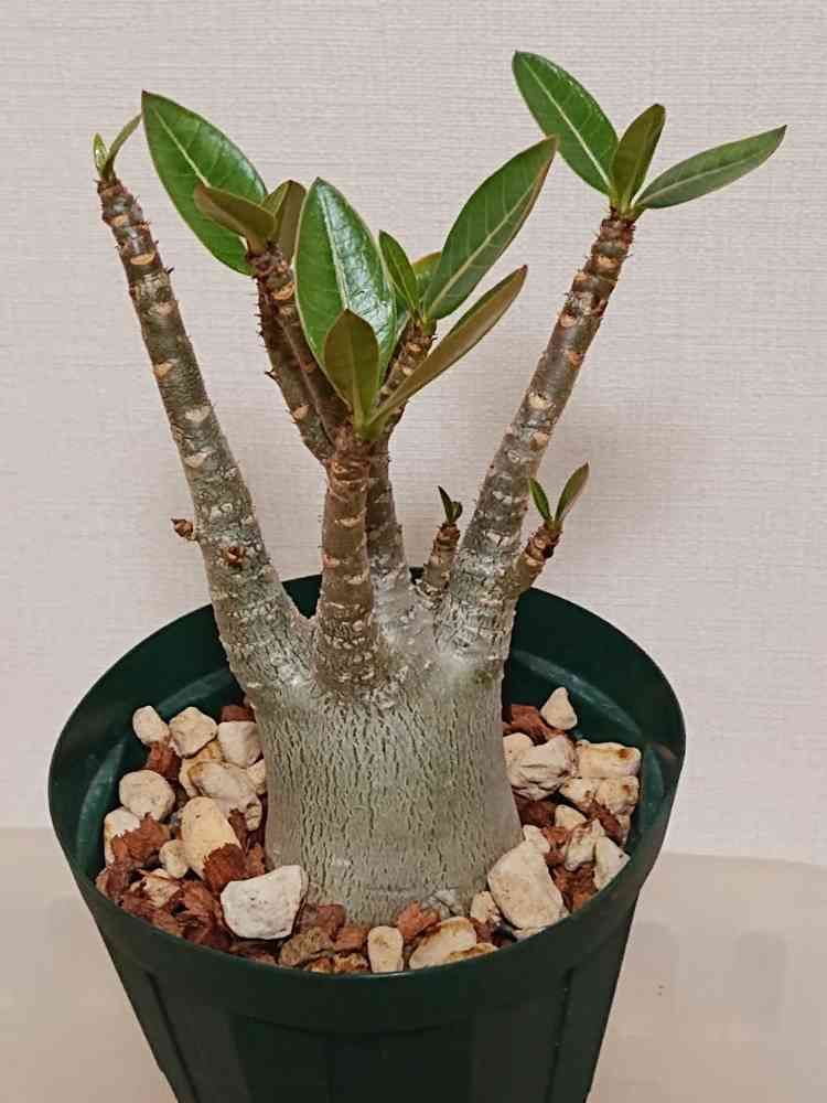 アデニウムもお目覚め。今は遮光して日光に慣らし中ですが、どんどん葉が展開してきて良い感じ。😆