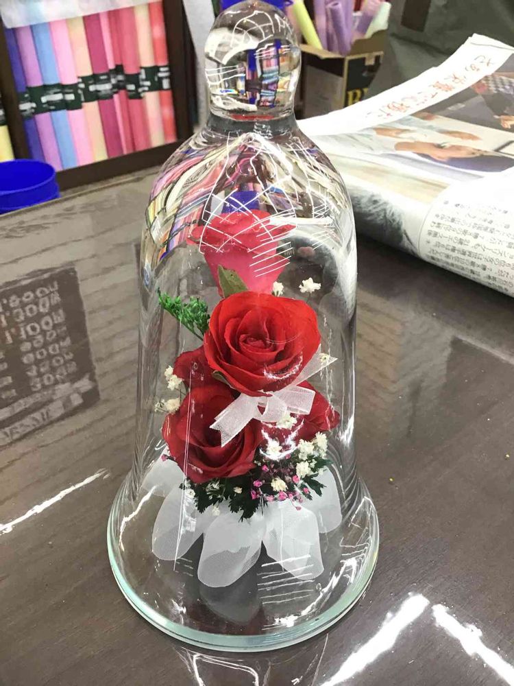 プリザーブドフラワー が、しっかりしたガラスで 覆われているので、耐久性が あって、いつまでも 飾れる と 思います❣️