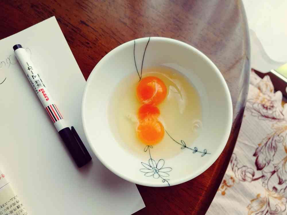 ☀️今朝、卵を割ったら何と👀 可愛い2つの卵黄が❤️