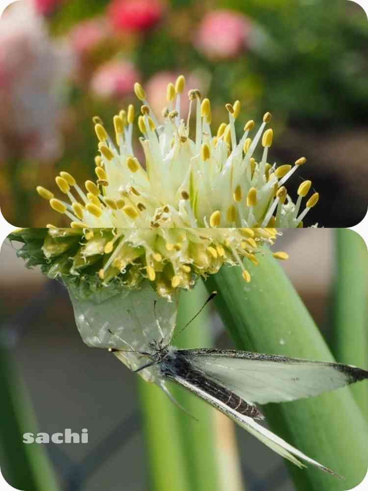 ネギ坊主の花に蝶々が🦋🦋🦋