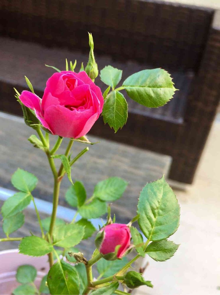 3年目のミニバラ🌹ですよ。うどんこ病に負けずなんとか咲いてくれました。去年薔薇にチャレンジと言ってたのにまだまだミニ薔薇から進めないのです。