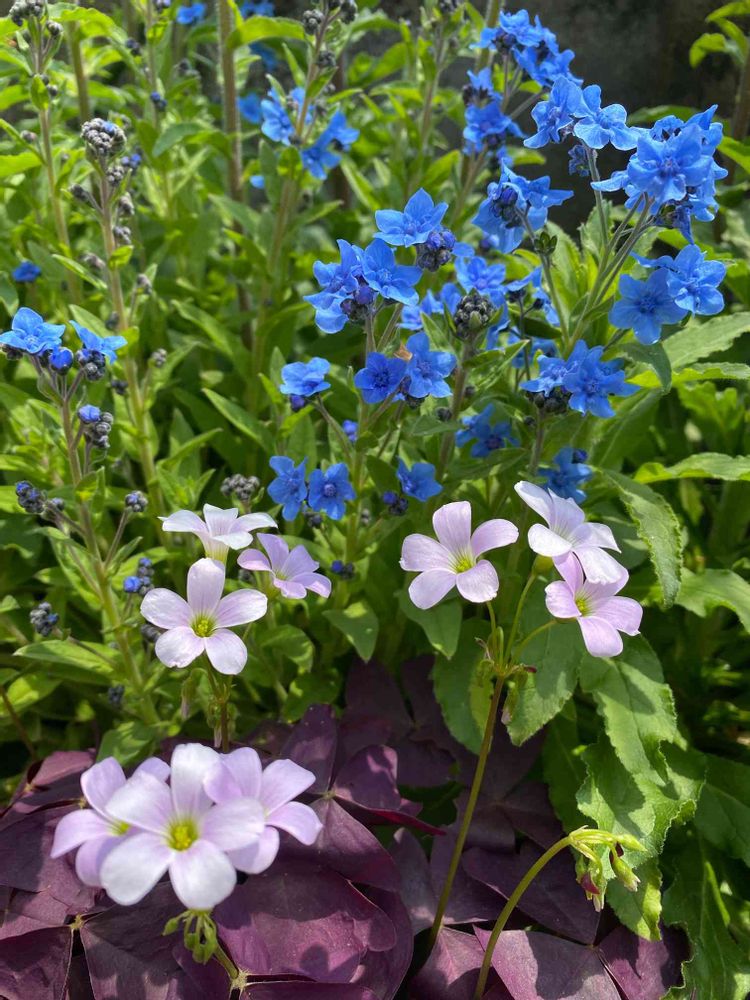 オキザリスとアンチューサとうまいタイミングで咲いてくれました😃