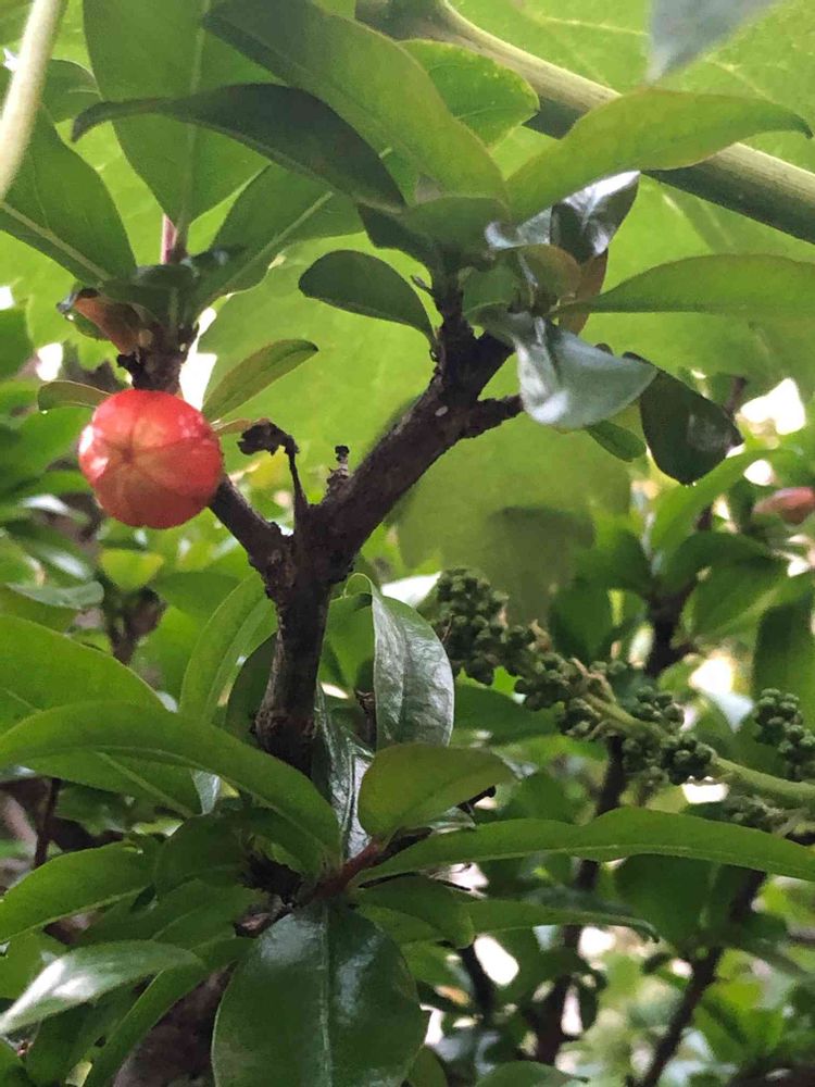 ザクロの花芽を発見っと思ったら、後ろから忍び生える巨峰の花芽⁉️