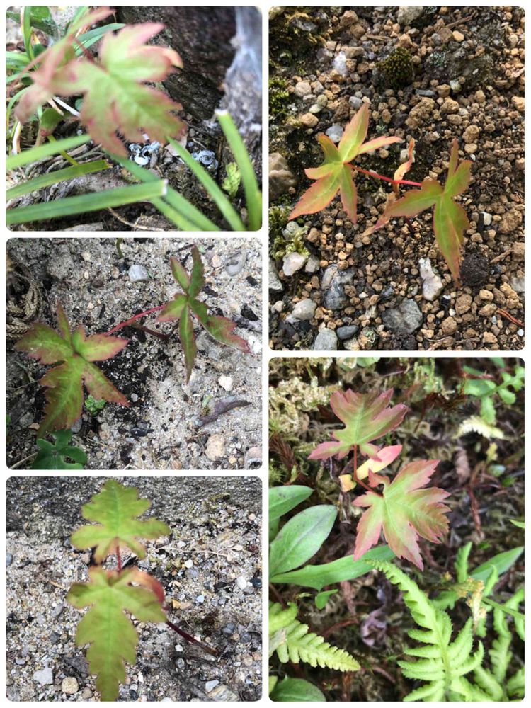 モミジの赤ちゃん👶が5ヶ所で見つかりました!ここ数年毎年、拾い上げて鉢上げましたが、育ちません!