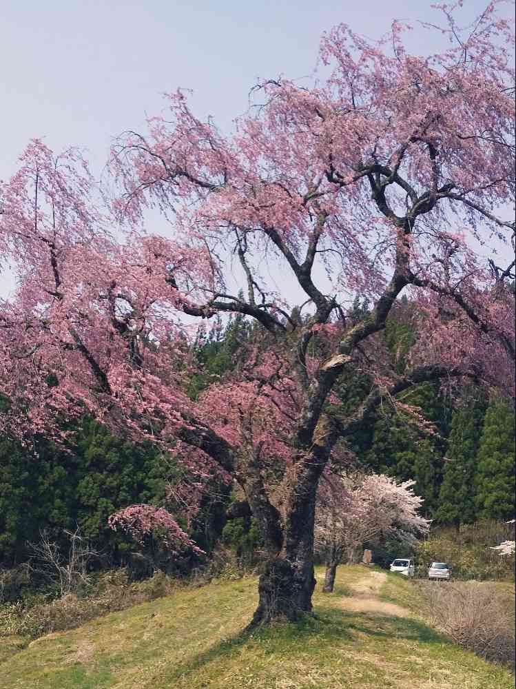 こんにちは👋😃山形県金山町の田屋の一本桜です😃先週つぼみで投稿しました