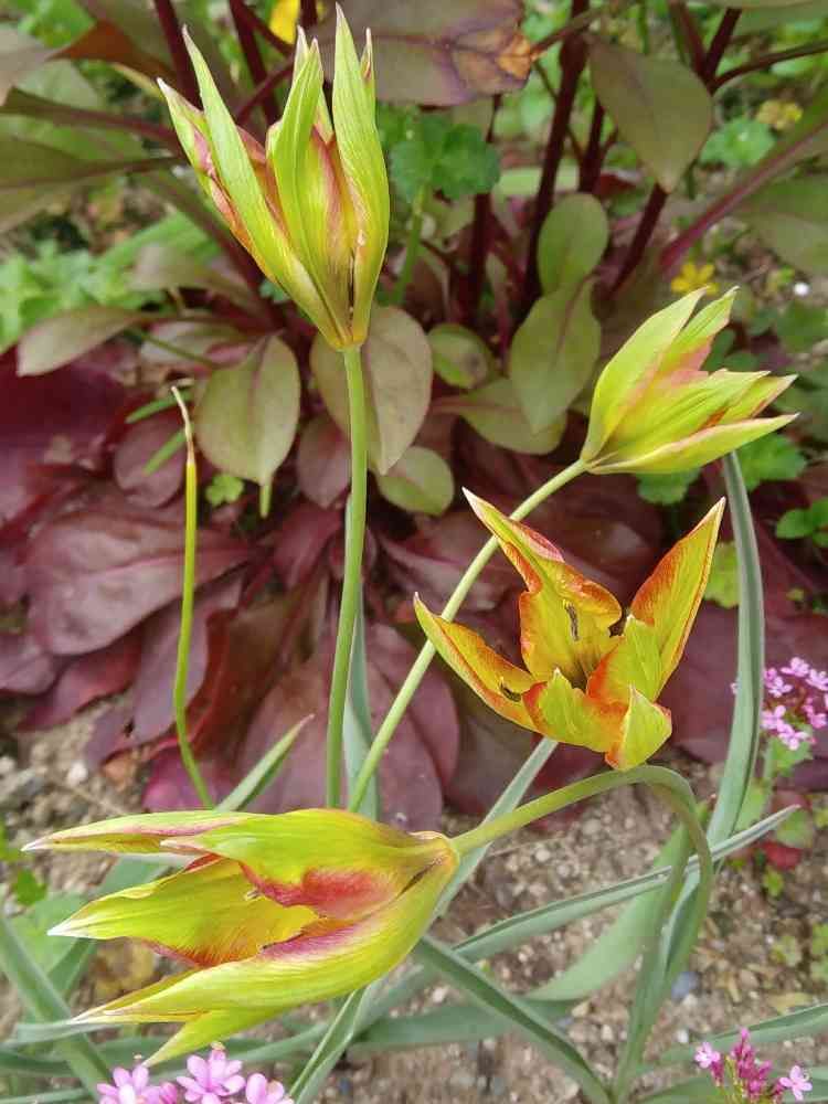 まりの庭さんの原種チューリップ,ペンステモン ハスカーレッド,オルファニデアフラバ、の投稿画像