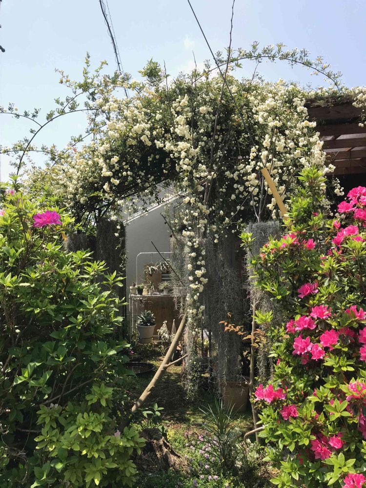 2020/04/18、躑躅と蔓薔薇が満開です。