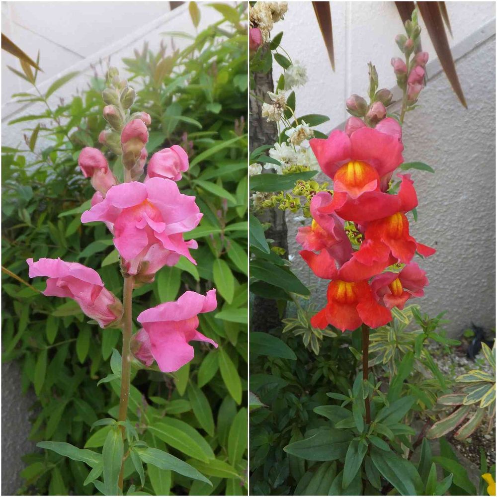 お散歩途中。 2色のキンギョソウが綺麗に咲いていました。パチリ