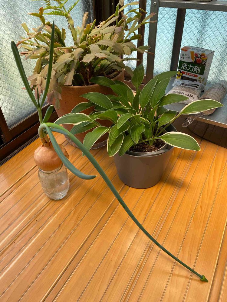 🤣🤣🤣玉ねぎをサンルームに放置していたら、長ーいアートオブジェになってました🤣どないしよw