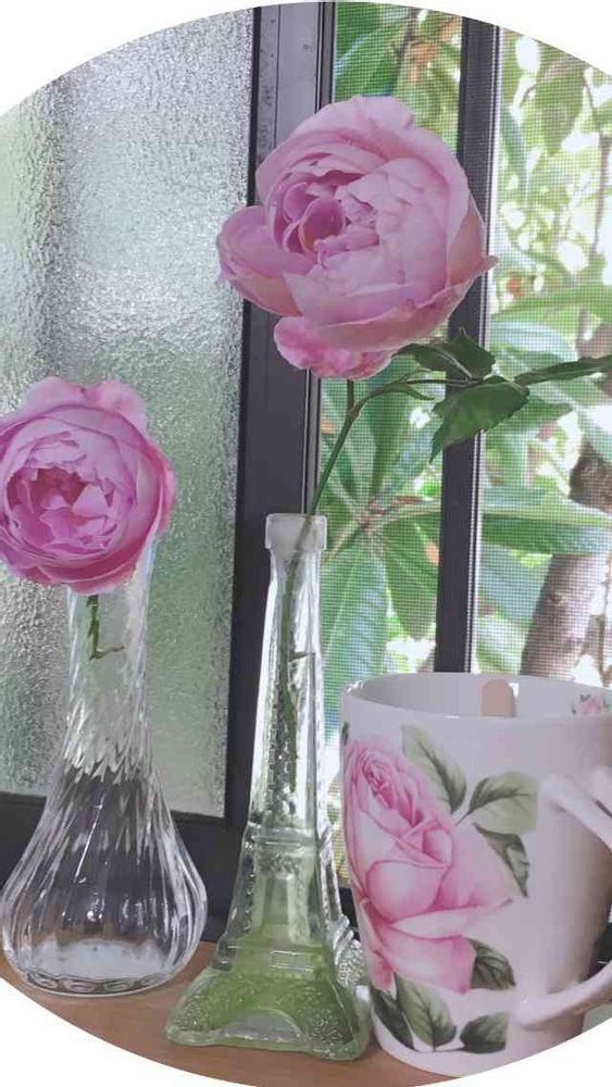 花が好きさんの窓辺,ラレーヌビクトリア,バラ園で買ったカップ♡の投稿画像