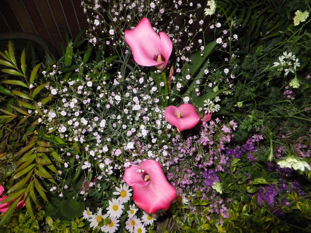 フラッシュを焚いたので、カスミソウ?が白く浮かび上がりカラーを引き立てていました。