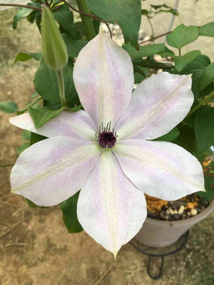 今年お迎えしたクレマチス 淡墨が咲きました!あわい紫がなんとも言えず、気に入りました!