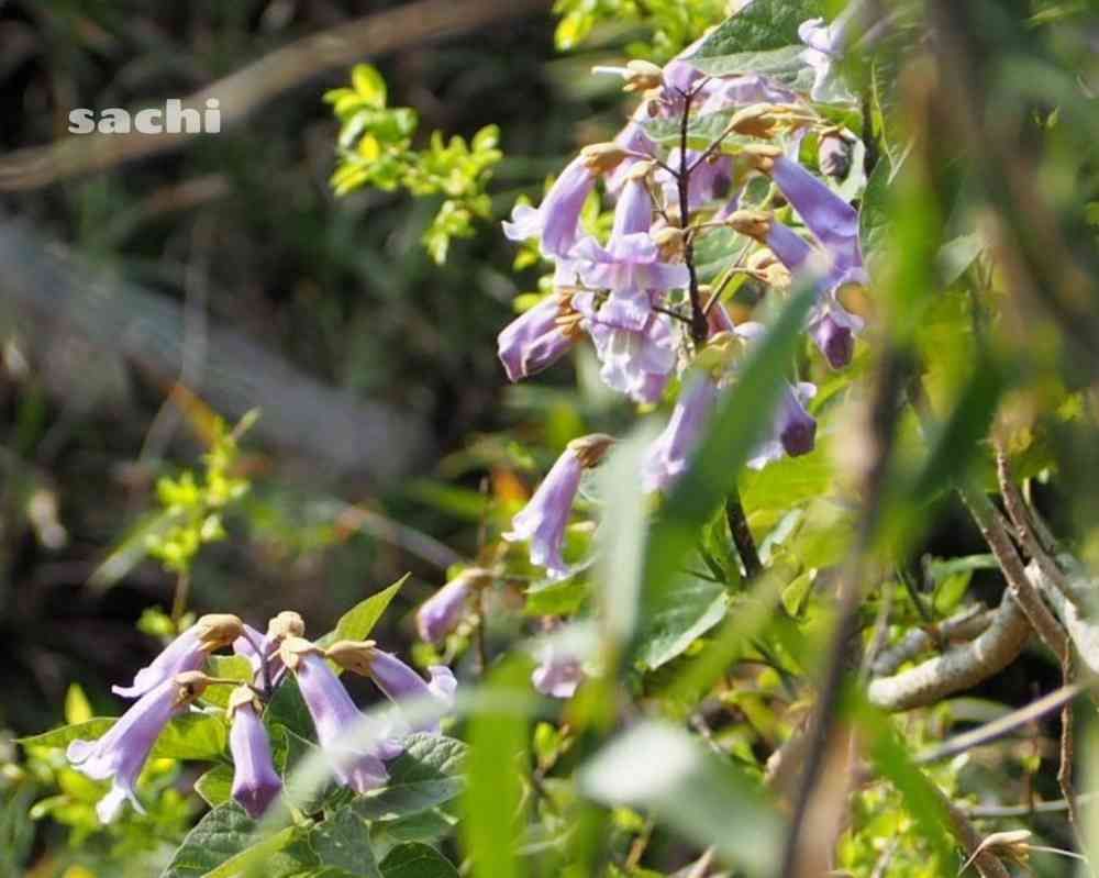 望遠カメラで良く見たら…ん‼️もしかしてこれって「キリ」の花…