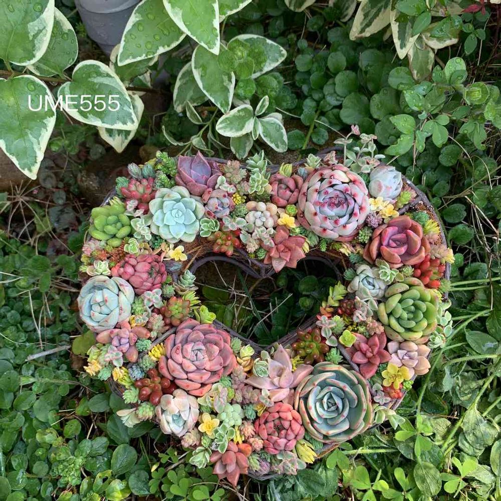 UME555さんの小さな庭,多肉植物リース,ハート型リースの投稿画像