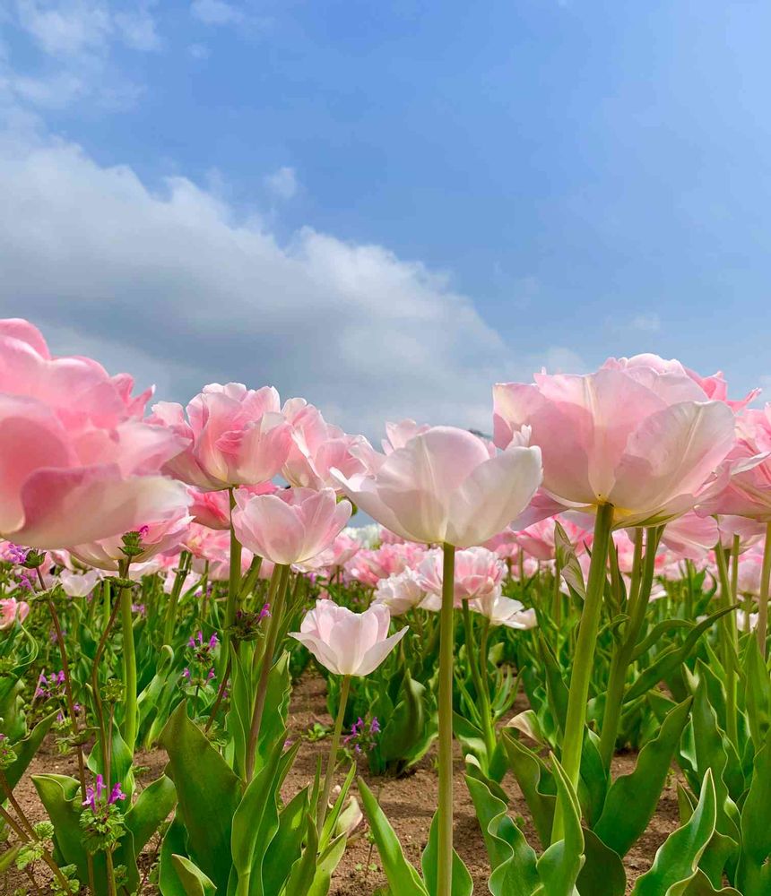 青空にチューリップ🌷素敵ですね😍