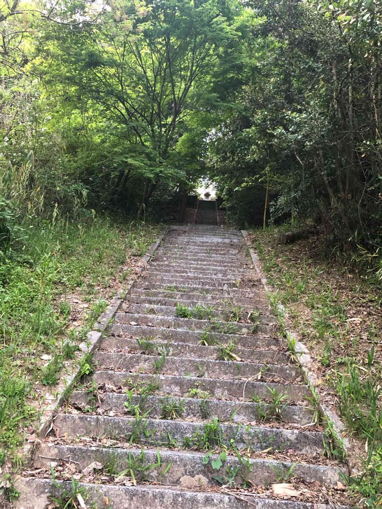 自粛生活でお散歩も全然してなくて階段登ろうとしたのですが、見上げてみたらもう手を合わせて🤣パンパンしていました。