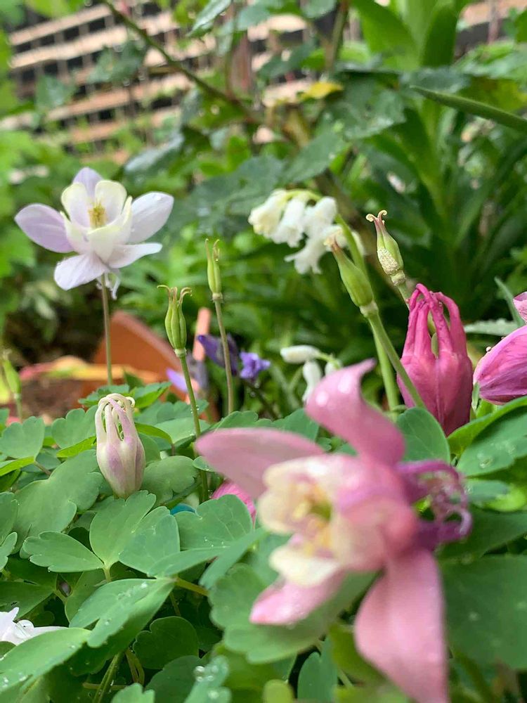 オダマキの蕾が、イチゴミルクみたいꈍ◡ꈍ💗可愛い色〜♡