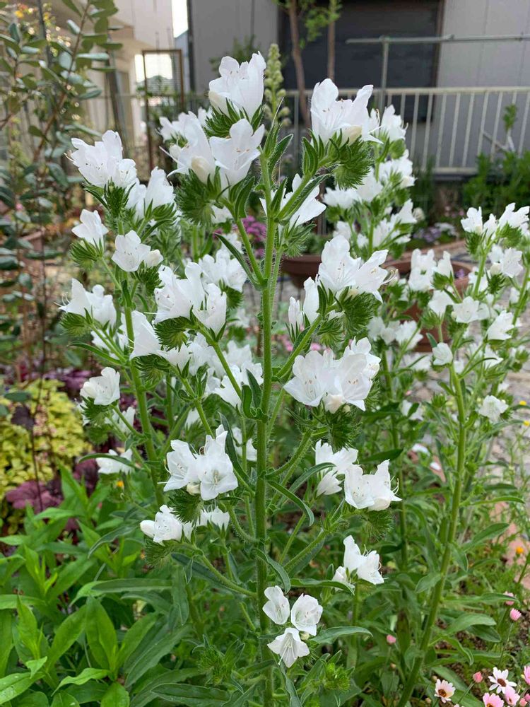 「白の花は本望ではないかもしれませんが、エキウムの白花は出回っていない花色ですので、引き続きこの春、花壇でお楽しいただければと願っております。」