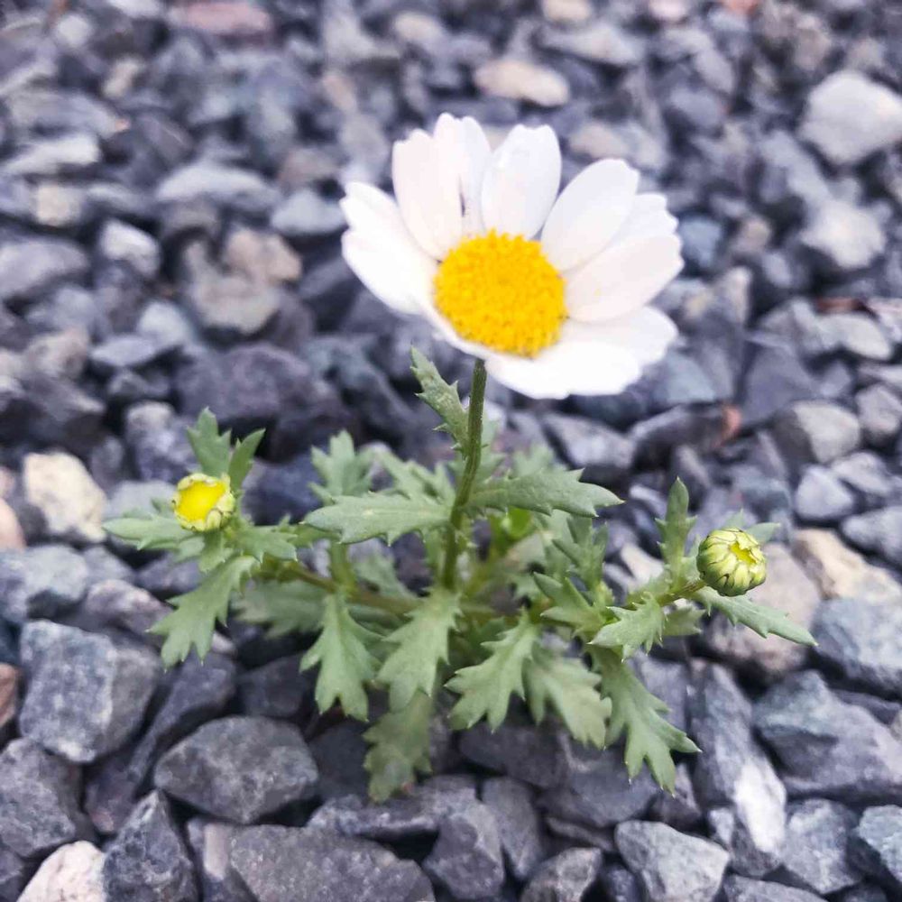 砂利の上に咲いてる😳