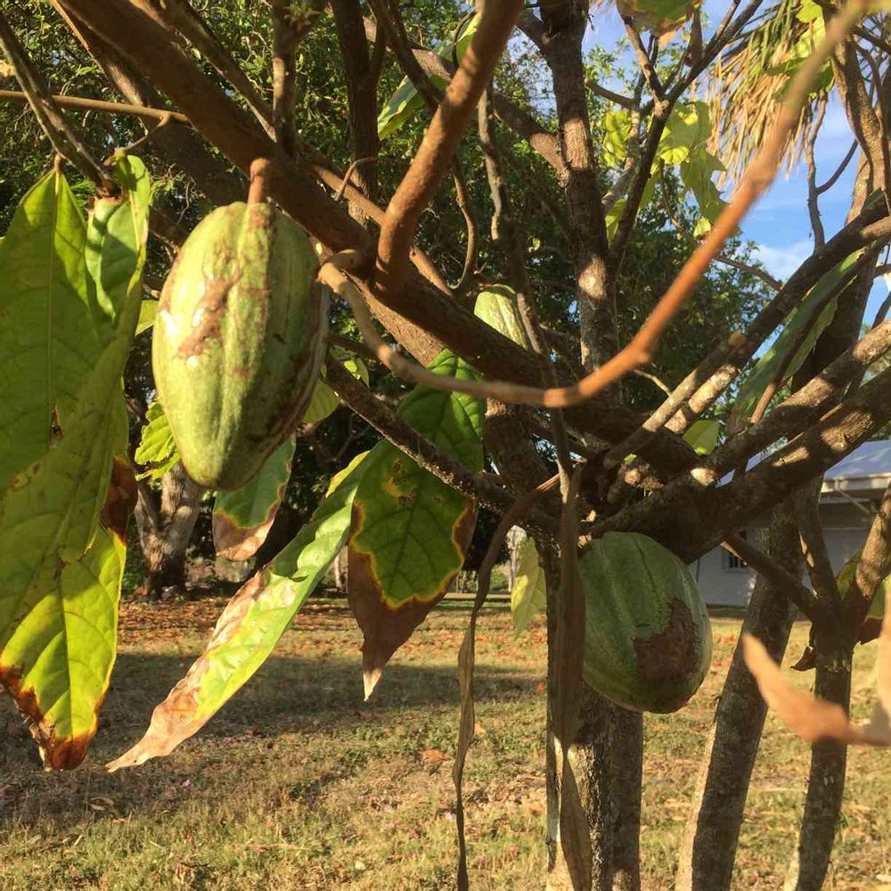 相方さんとココナッツを取りに行ったらこの木のみを発見しました。カカオらしいです。