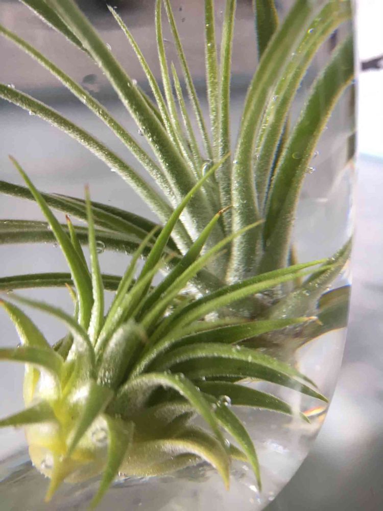 ティランジアなら、週2位霧吹きで風通しの良い所で育てるといいと書いてありましたよ〜!水分がずっと溝に溜まっていると良く無いらしいので拭き取るとかって😃