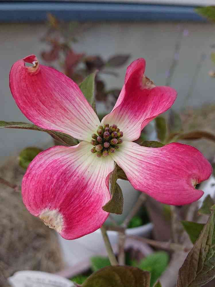枯れかけたハナミズキが、今年さいたよ。コロナでも花は元気に力強く咲くよね。おうちにいても、ポジティブにいかないと。