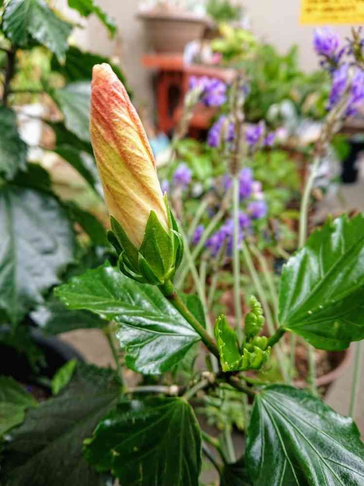 ハイビスカス🌺イエロー ユカリンの蕾が膨らんできました(´˘` )♪