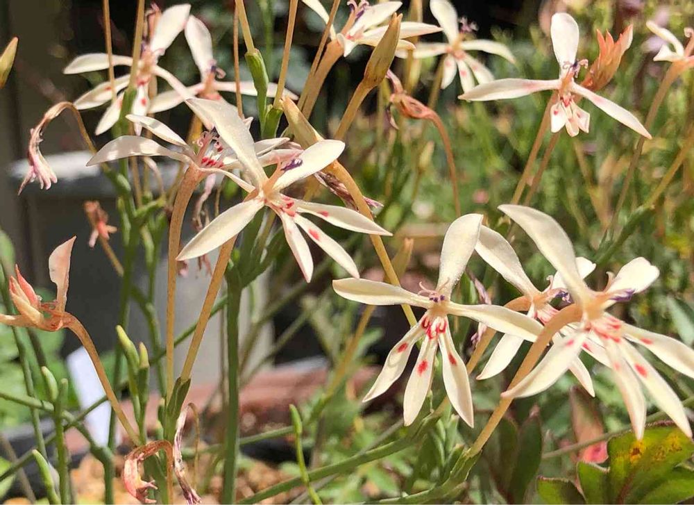ラペイロージア アンセプスです。ラペイロージアの中では地味目の花だと思いますが、良く見ると赤い斑点があったりして可愛いです💕😊。