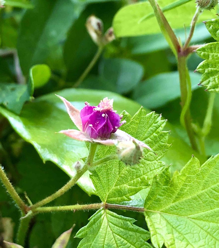 キイチゴ属は白い5弁花がほとんどですけど、コレだけ個性的なオシャレさんですね〜😆💕
