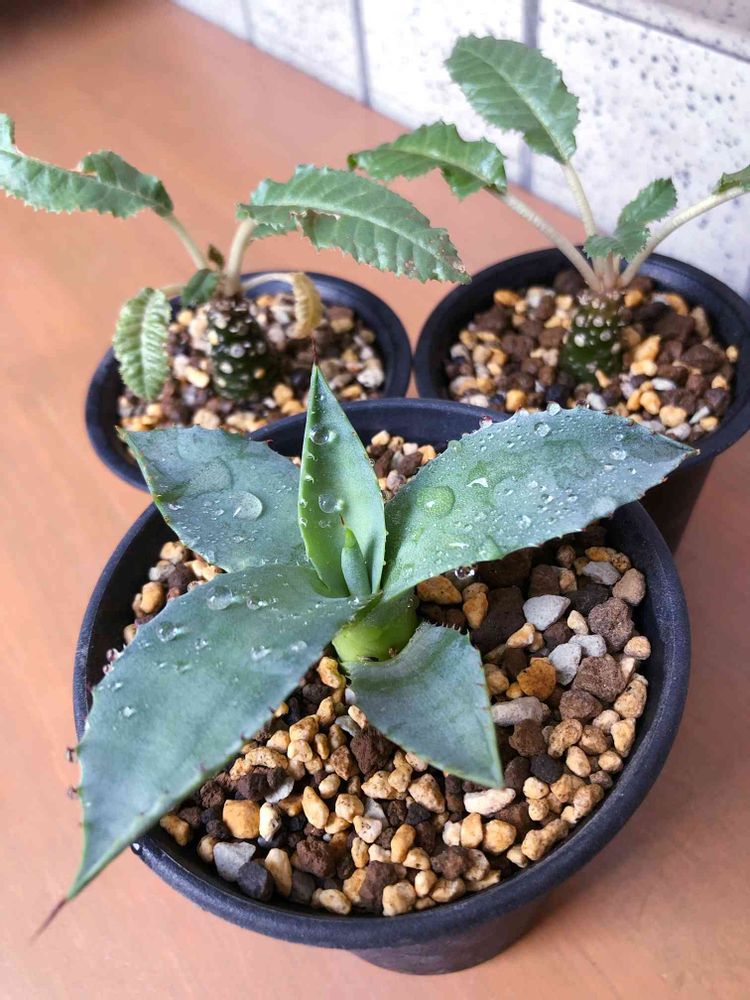 2019年9月にジャッカルさんにお譲り頂いたドルステニア ・フォエチダの実生株とアガベの…なんだっけ:(;゙゚'ω゚'):