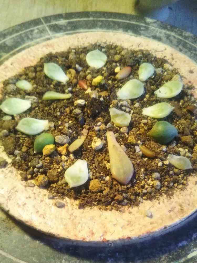 ちょうど育ってきた葉刺しっ子達がミニ鉢に移行してった葉刺し皿に入園。