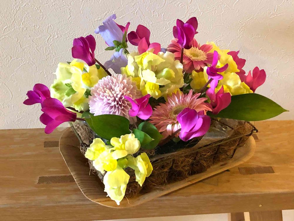 ベランダのキンギョソウとガーデンシクラメンでアレンジ作成💐