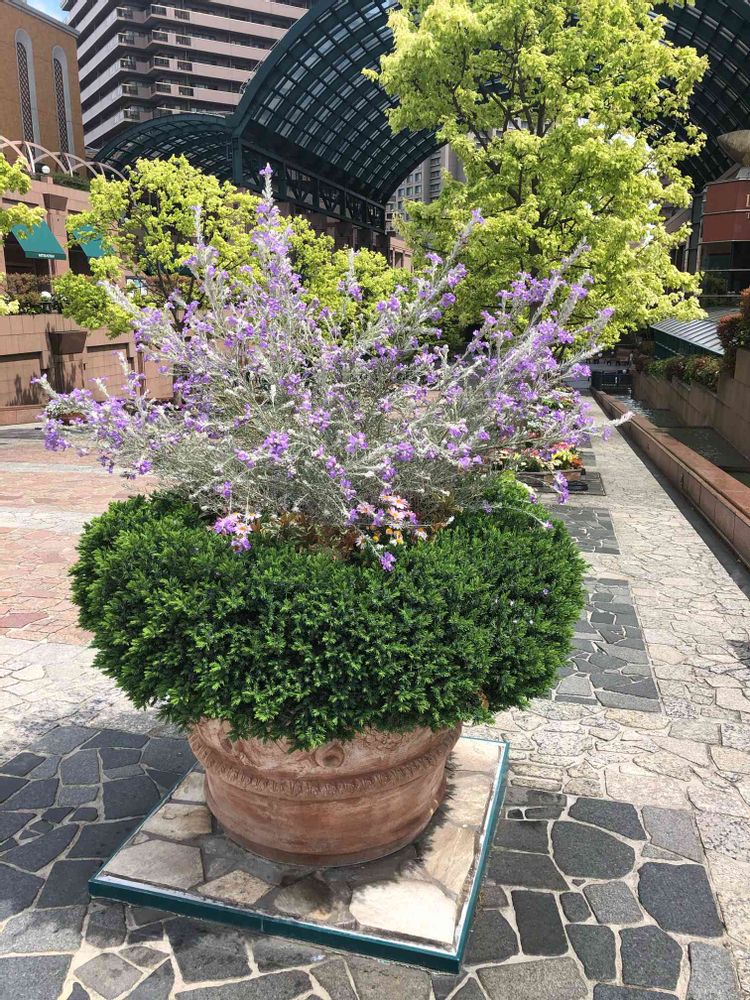 またまたここ。最近の自転車🚴♀️お出かけの定番。花に癒され、ベンチでランチを食べ、戻る。今日は家族全員で。このお花はエレモフィアかな?お店は閉まっててもお花は手入れされてるんだね。