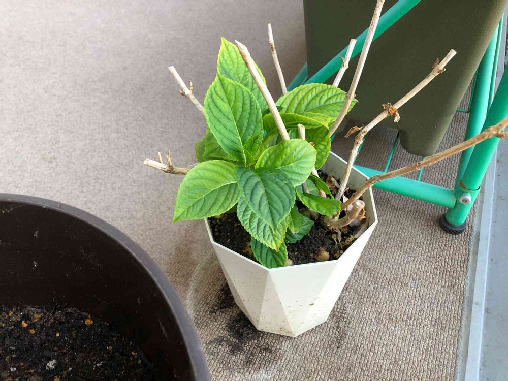 葉っぱがどんどん生えてきた。ほんとは素焼きの鉢がいいらしいから、秋に植え替えようかな。
