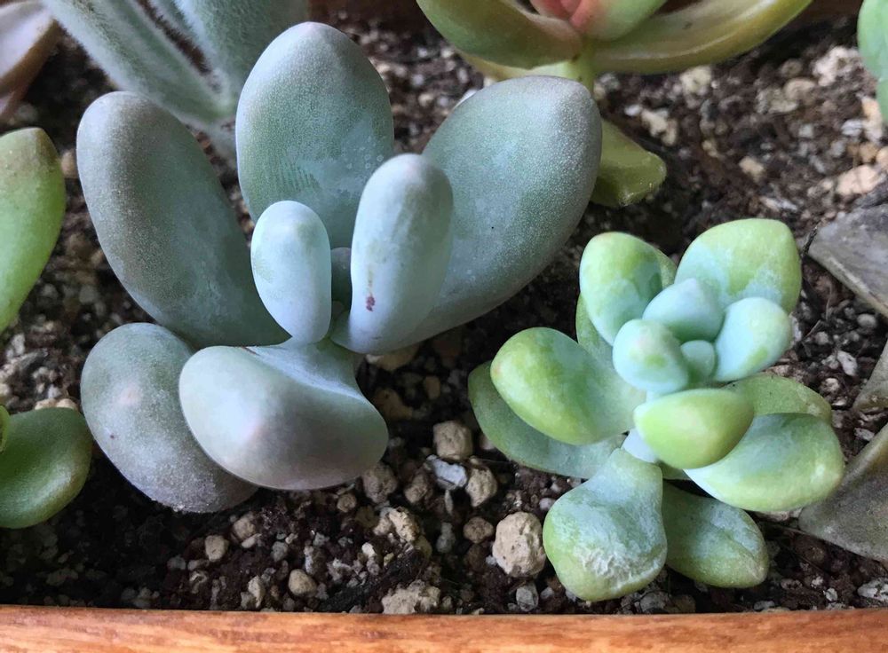 美人系、特に星美人と月美人は写真だと一緒に見えますよね。昨日購入した桃美人は葉っぱの先っぽがツンとして尖っているので違うのかな、と思っていたのですが。