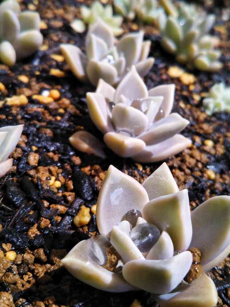 水やり中に近所の子がじーっと多肉を見てたので、お水キラキラしててキレイだよねぇって言ったら「ダイヤモンドみたい!」って返ってきた。
