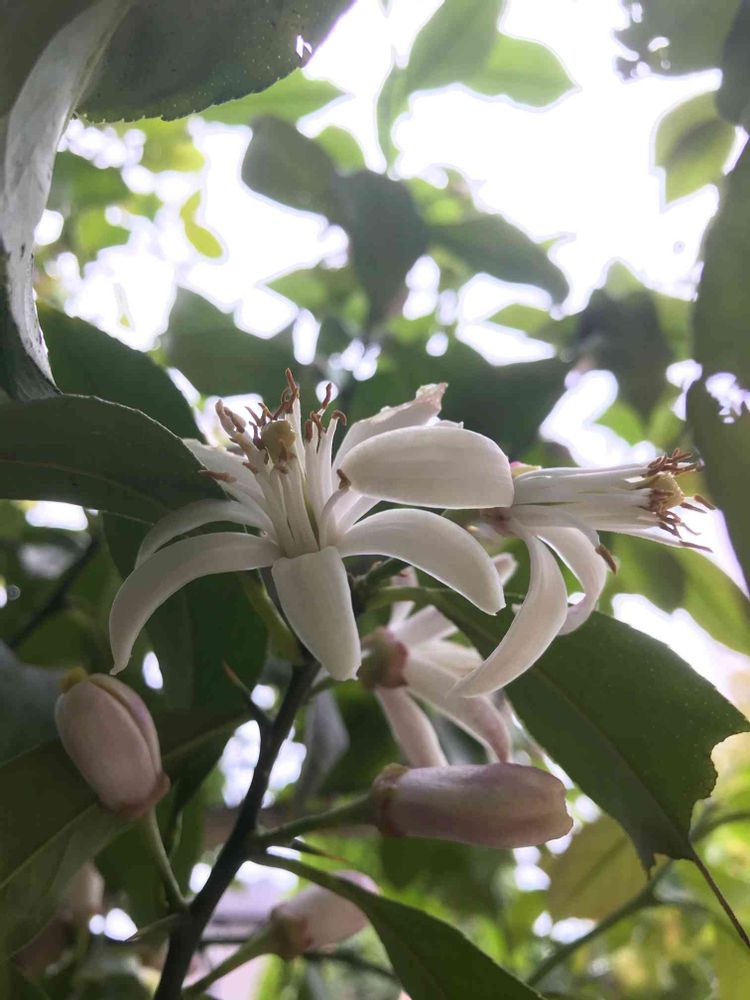 さて、今日の写真は庭に咲いたレモンの花です🍋