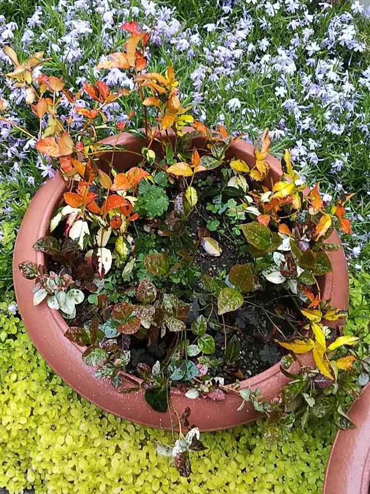 鉢は、芝桜とマルバマンネンクサに埋もれてます😁