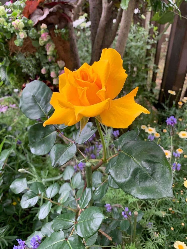花色は山吹色のような鮮やかな濃い黄色で、剣弁高芯咲き。