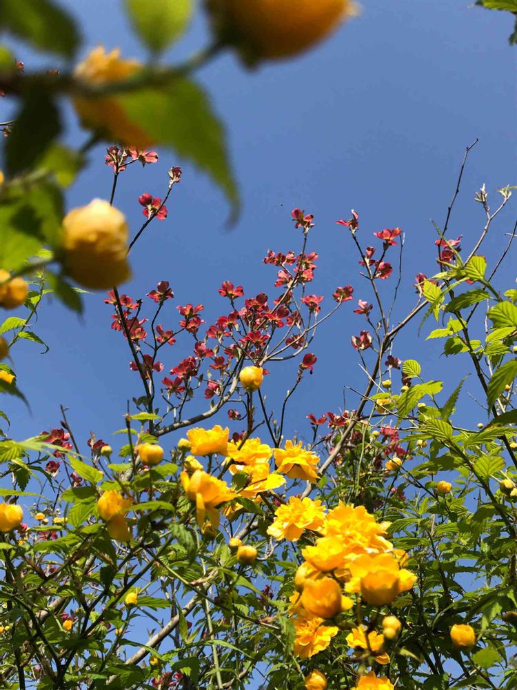 青空に山吹の花🌼