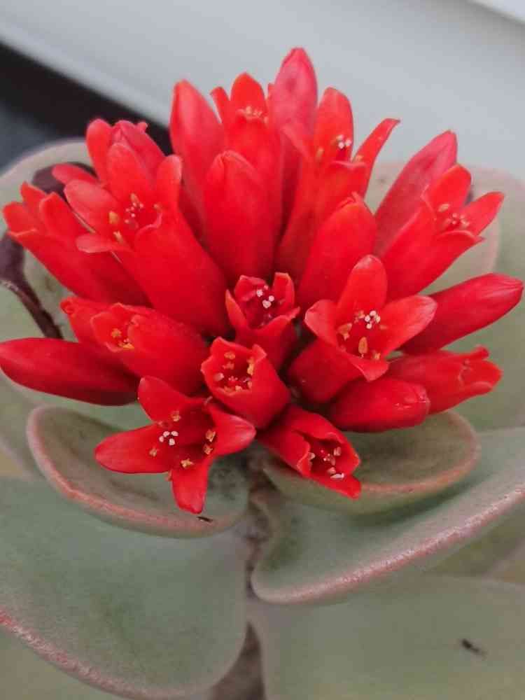 ほんとだね、反ってるね葉っぱ。何か掛かってる?花はこんないろだった(見たことないけど)まあるく一塊に咲くよね。