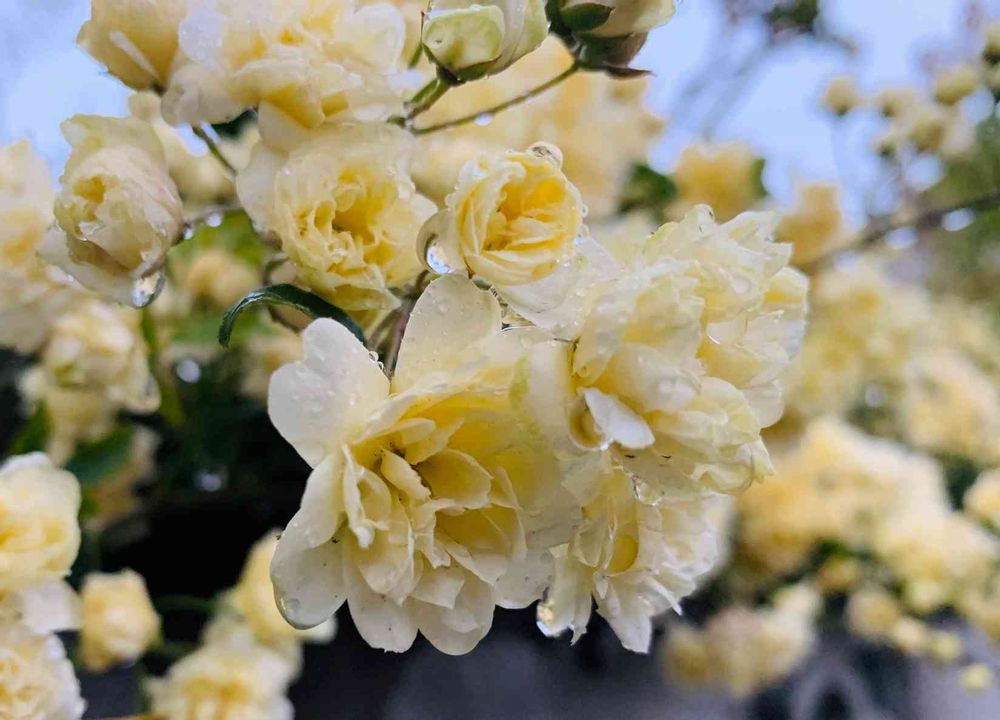 雨に濡れる木香薔薇🌹💛💧✨