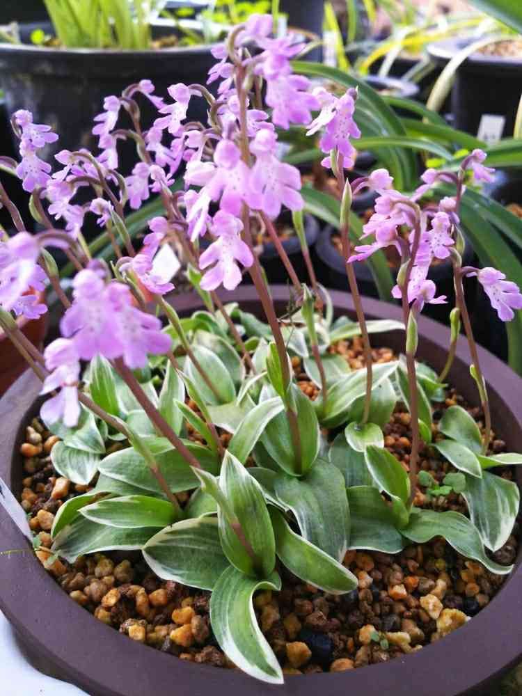 有名な斑入りオキナワチドリ「沖の輪」です。