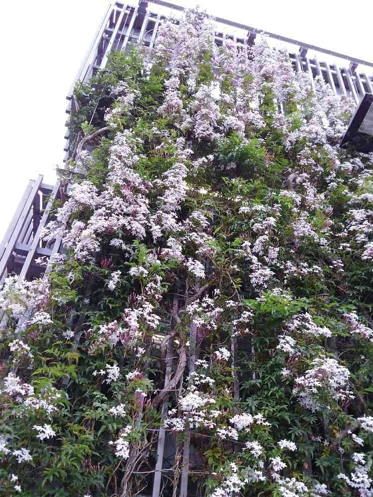 バス停の横にある自転車置場の3階迄伸びて見事に咲いている。