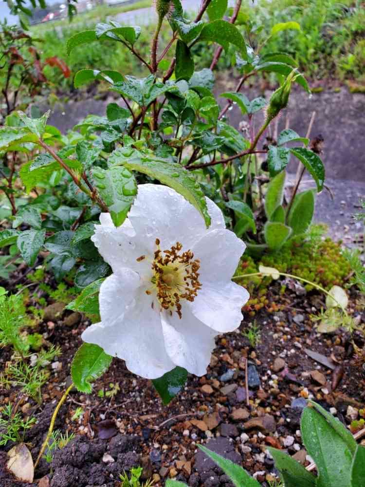 ナニワノイバラです。一重で大きく真っ白で綺麗です。