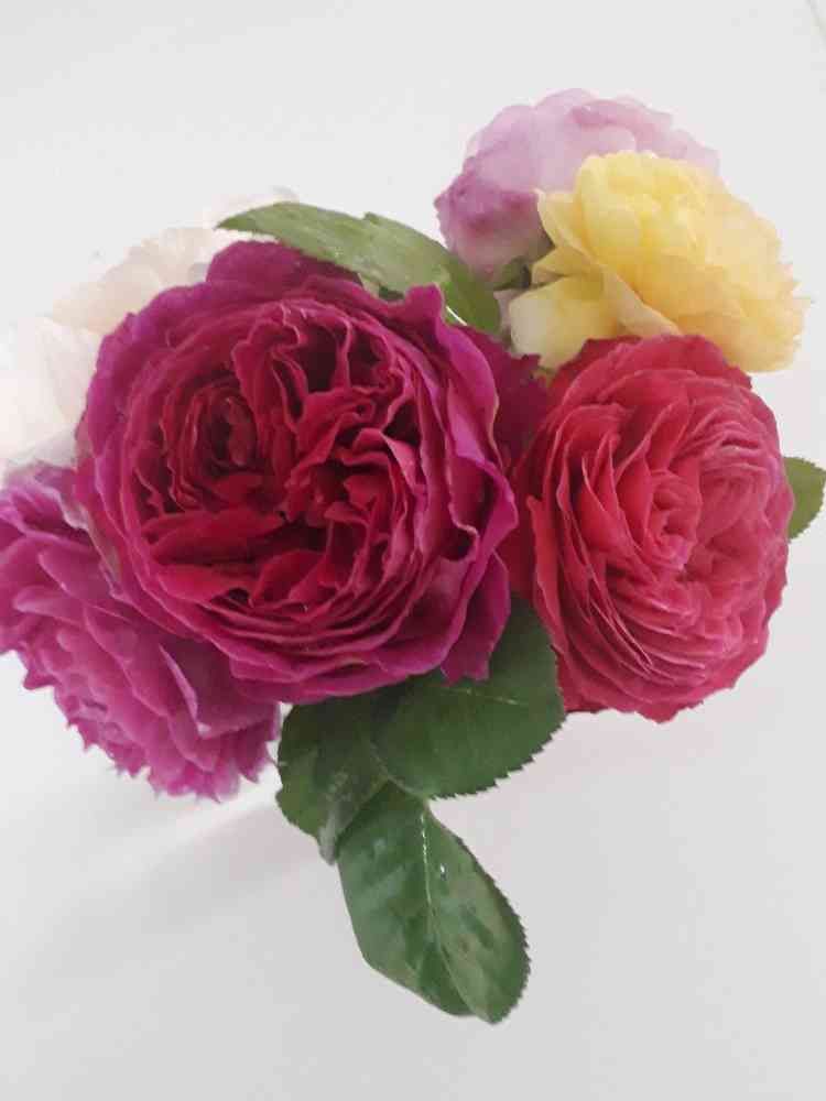 昨日の大雨で重たそうにしてた、🌹を切り花にして室内で愛でてます。良い香りしてます